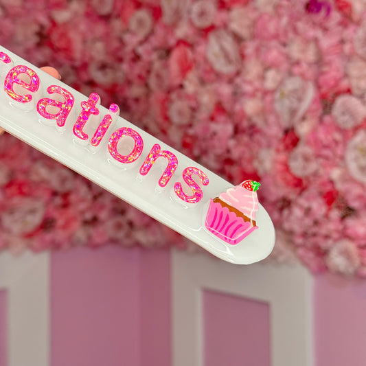 White nameplate with CupCake #13